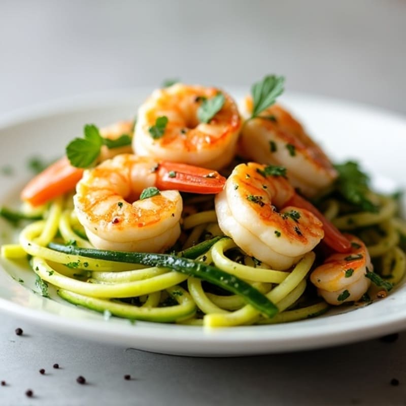 Enjoy these succulent citrus-garlic shrimp served atop fresh zucchini noodles, lightly sautéed in olive oil and elevated with a burst of lemon. This dish combines bright, zesty flavors with a satisfying mix of tender shrimp and crunchy noodles, perfect for a fulfilling meal at any time of day.