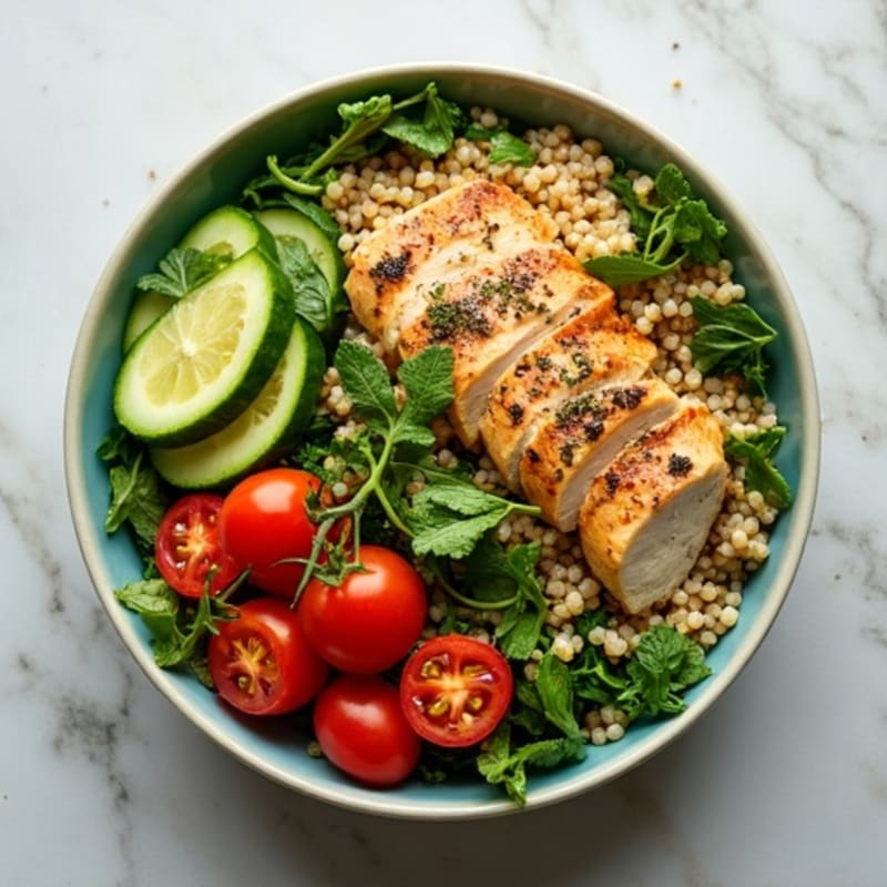Herb-Marinated Chicken and Quinoa Bowl with Fresh Vegetables