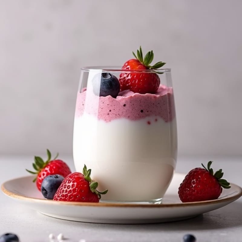 A light and creamy mousse that pairs the tanginess of nonfat Greek yogurt with the subtle sweetness of mixed berries and a touch of almond butter for a deliciously balanced dessert that satisfies both your tastebuds and your nutritional goals.