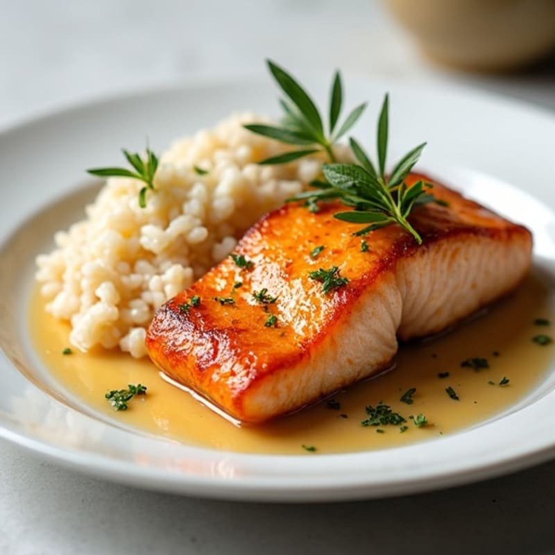 Honey-Glazed Pan Seared Salmon with Coconut Rice