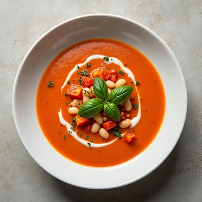 Enjoy a velvety roasted tomato basil soup that brings together the natural sweetness of roasted tomatoes and red bell pepper with a creamy finish from non-fat Greek yogurt and a hearty boost from cannellini beans. Perfectly balanced in protein and flavor, this soup is a comforting meal whether served for breakfast, lunch, or dinner.