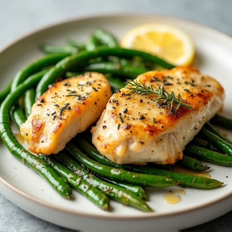 Savor tender, lemon-herb infused chicken paired with crisp garlic green beans in this light yet satisfying meal. The chicken is perfectly pan-seared to a golden finish, while the green beans are quickly sautéed with garlic and a hint of citrus for a burst of fresh flavor.