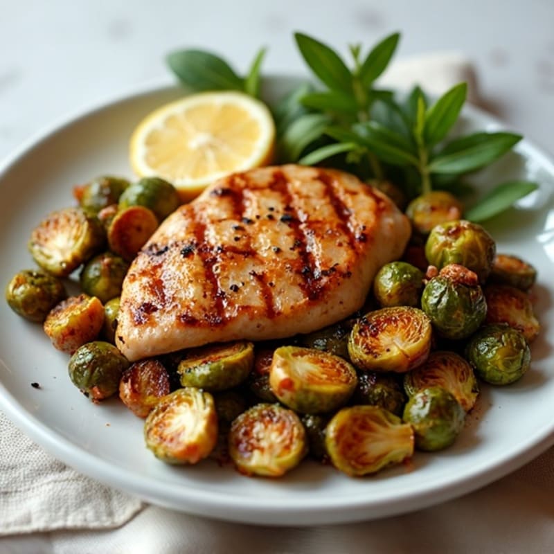 Savor the delightful combination of crispy roasted Brussels sprouts drenched in a tangy honey-balsamic glaze paired with a perfectly grilled chicken breast. This dish offers a balance of savory and sweet elements, featuring tender, juicy chicken and caramelized sprouts that deliver a satisfying crunch in every bite.