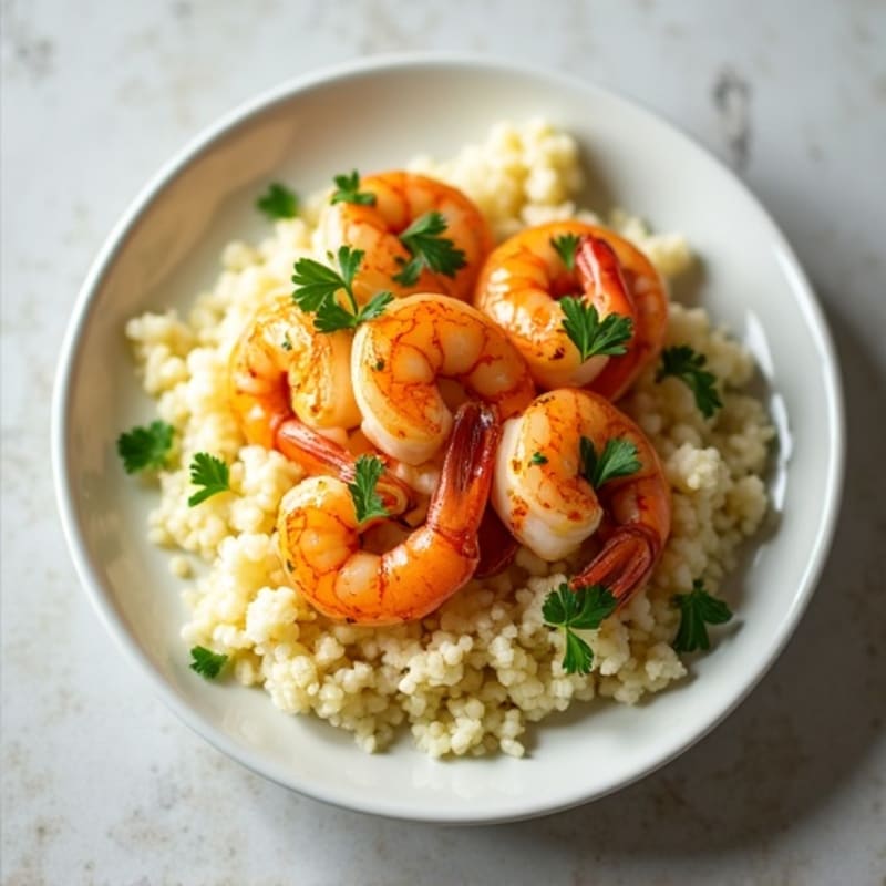 Savor the bright, zesty flavors of garlic and lemon-infused shrimp paired with a fragrant herb cauliflower rice. This dish offers a delightful balance of protein and light, fresh veggies, making it an ideal meal for a clean and nutritious dinner.