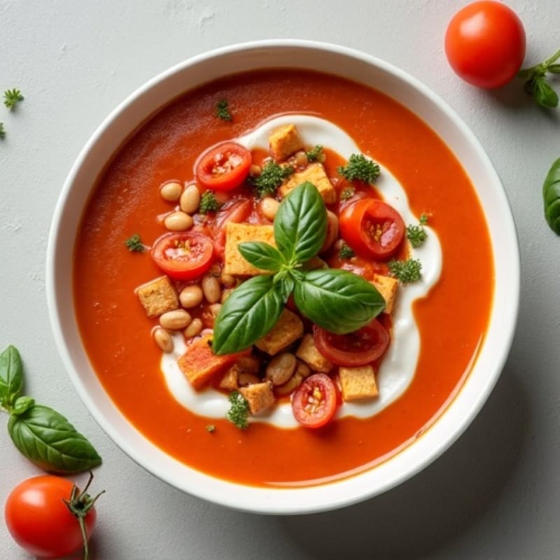 Enjoy a velvety, roasted tomato basil soup that balances rich, savory flavors with a protein boost from beans, Greek yogurt, and tofu. The roasted vegetables add depth and sweetness, making this soup both comforting and nutritious—the perfect light yet satisfying meal any time of the day.