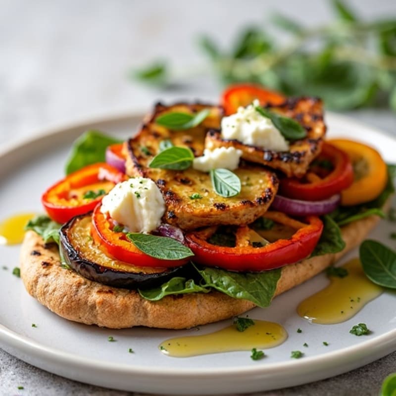 Savor this hearty flatbread layered with roasted seasonal vegetables, tangy goat cheese, and succulent grilled chicken, all drizzled with a fragrant herb-infused olive oil. The perfect balance of protein and flavor makes it an ideal meal for any time of day.