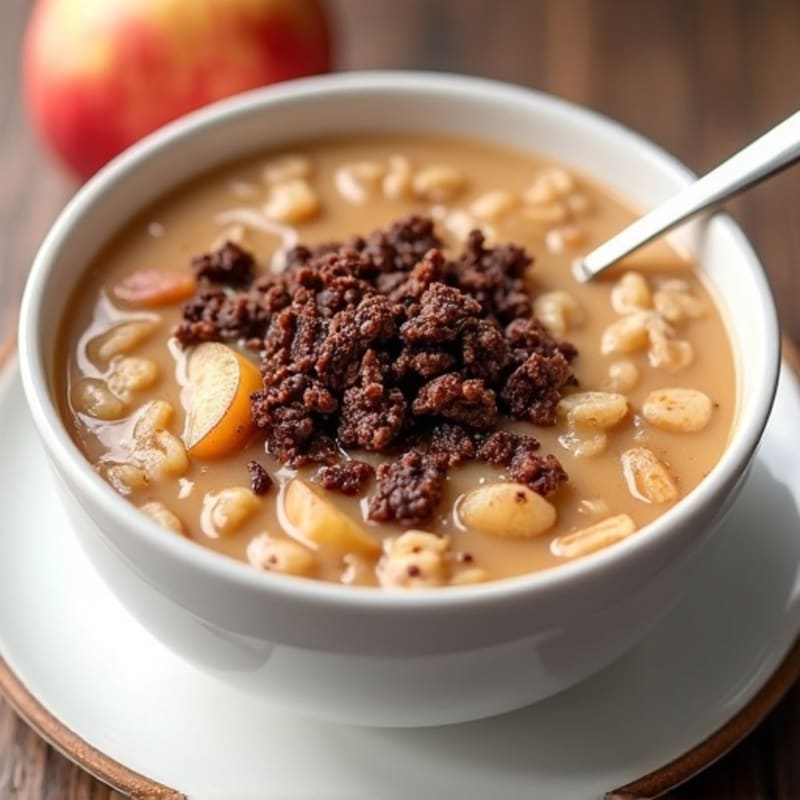 A comforting bowl of creamy oatmeal enriched with nonfat Greek yogurt and protein powder, tossed with tender apple chunks and aromatic cinnamon. Topped with a crunchy dark chocolate granola, this bowl offers a perfect balance of warmth, texture, and a hint of indulgence to start your day or fuel your meal time.
