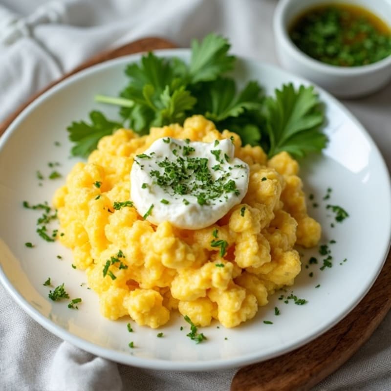 Fluffy Herb-Whipped Scrambled Eggs with Goat Cheese