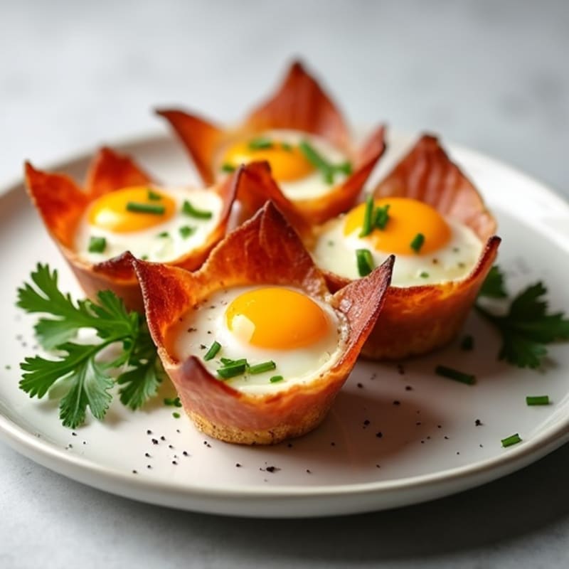 Savor the delightful blend of crispy prosciutto and tender baked eggs infused with fresh herbs. Each bite delivers a satisfying crunch and a burst of aromatic flavors, making it a versatile dish perfect for any meal of the day.