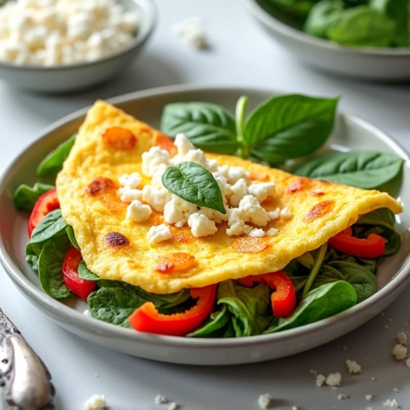 Enjoy a light yet satisfying omelette featuring airy egg whites combined with vibrant spinach, sweet red bell pepper, and tangy crumbled feta, all gently cooked in a hint of olive oil. This dish is perfect for a nutritious start or a wholesome meal any time of day.