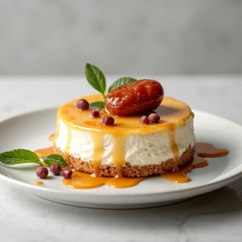 Protein-Rich Greek Yogurt Cheesecake with Date Caramel Drizzle