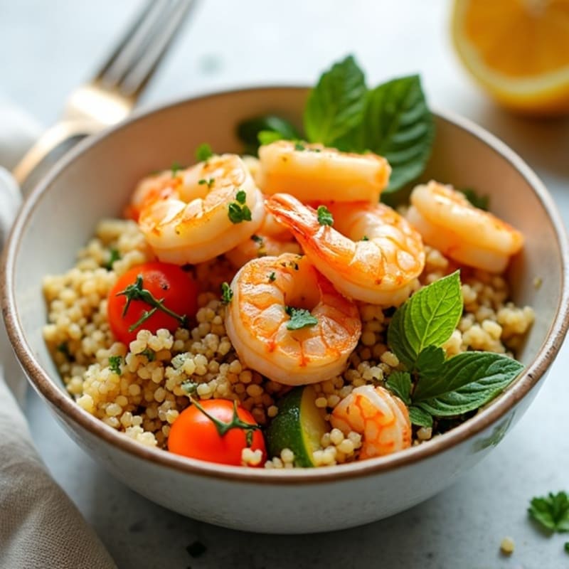 Savor the bright and refreshing flavors of citrus and garlic in this vibrant shrimp quinoa bowl. Tender shrimp, fluffy quinoa, and a medley of fresh vegetables come together with a splash of lemon and a hint of olive oil for a satisfying meal that's as nutritious as it is delicious.