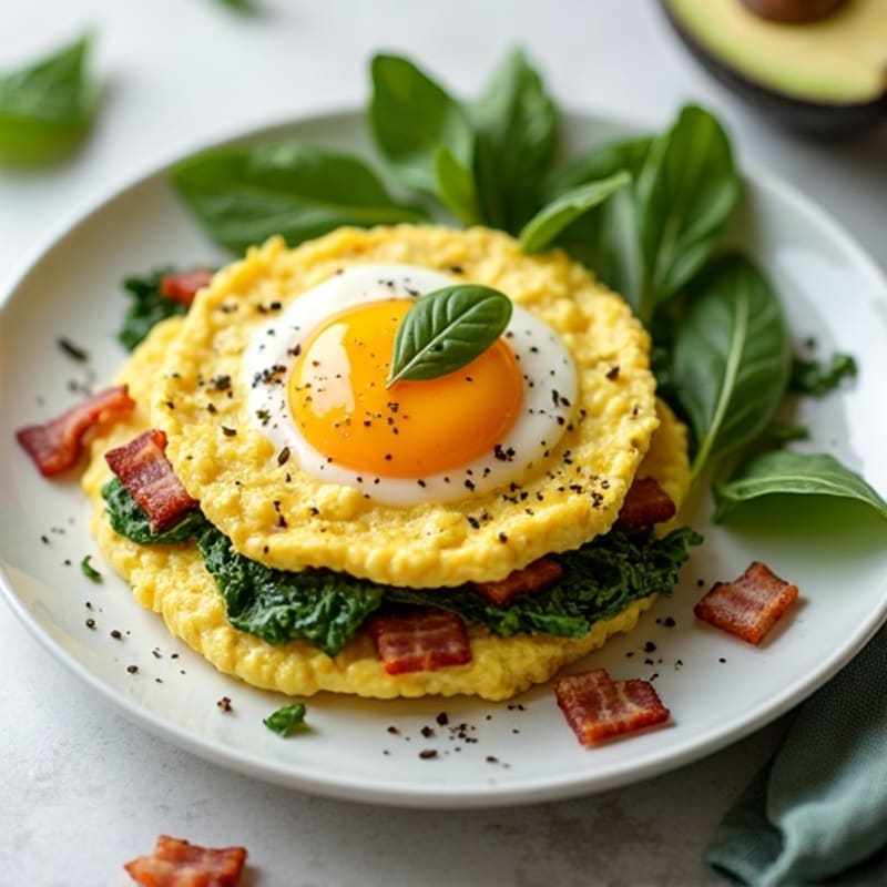 A light and delicious morning scramble featuring fluffy egg whites, nutrient-packed spinach, crispy turkey bacon, and the creamy goodness of avocado—all finished with a hint of olive oil for extra flavor. Perfect for a protein-packed start to your day!