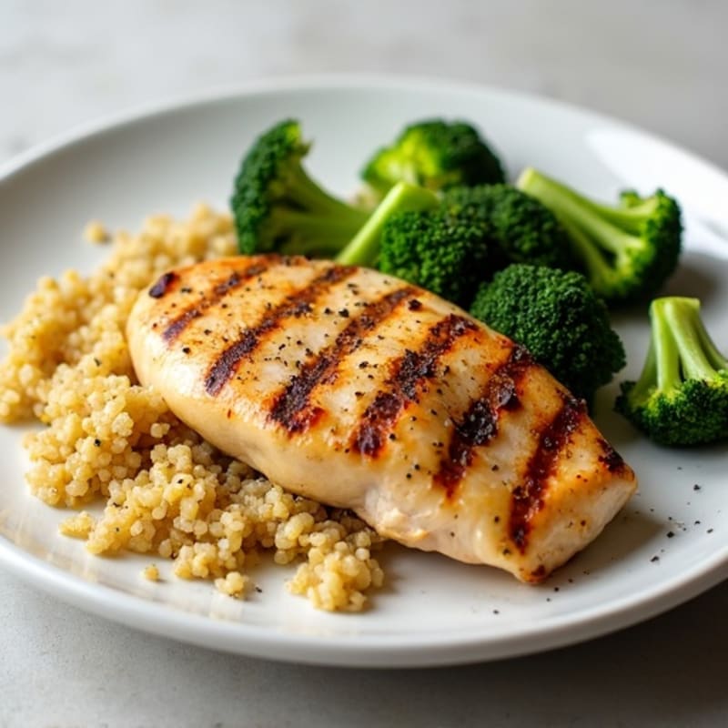 Enjoy a bright and satisfying lunch featuring perfectly grilled chicken breast paired with nutty quinoa and tender, roasted broccoli tossed in a hint of olive oil. A meal that delivers balanced flavors and textures to fuel your day.