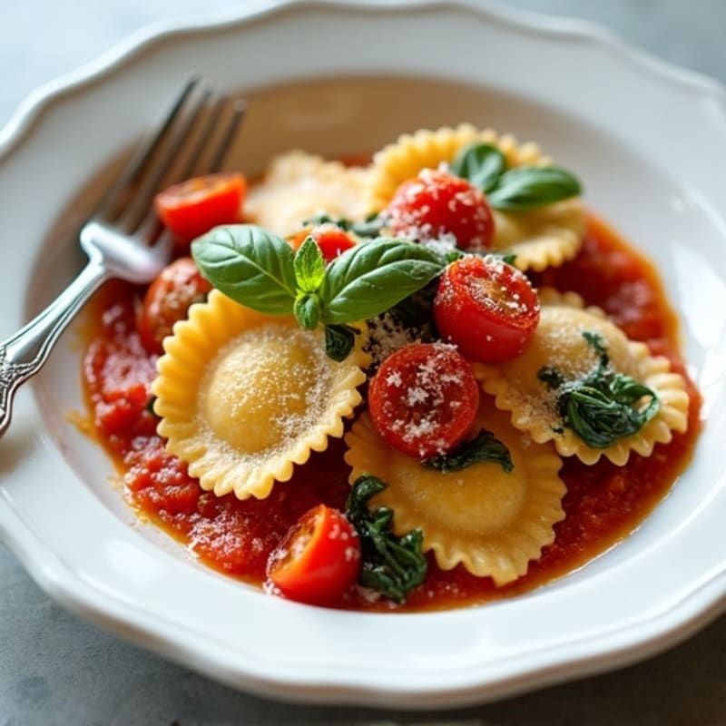 Ricotta Spinach Ravioli with Herb-Roasted Tomato Sauce