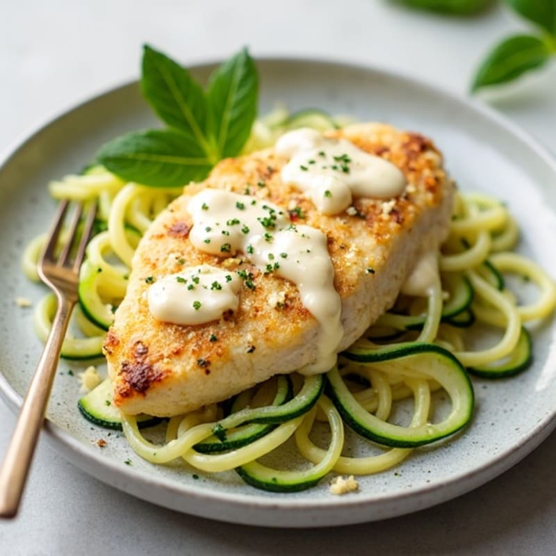 Creamy Cauliflower Alfredo Chicken with Zucchini Noodles